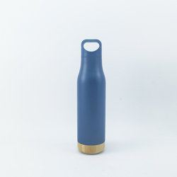Botella de agua de acero inoxidable de 500ml con frasco de vacío de bambú y producto termo para hidratación en la tapa dorada